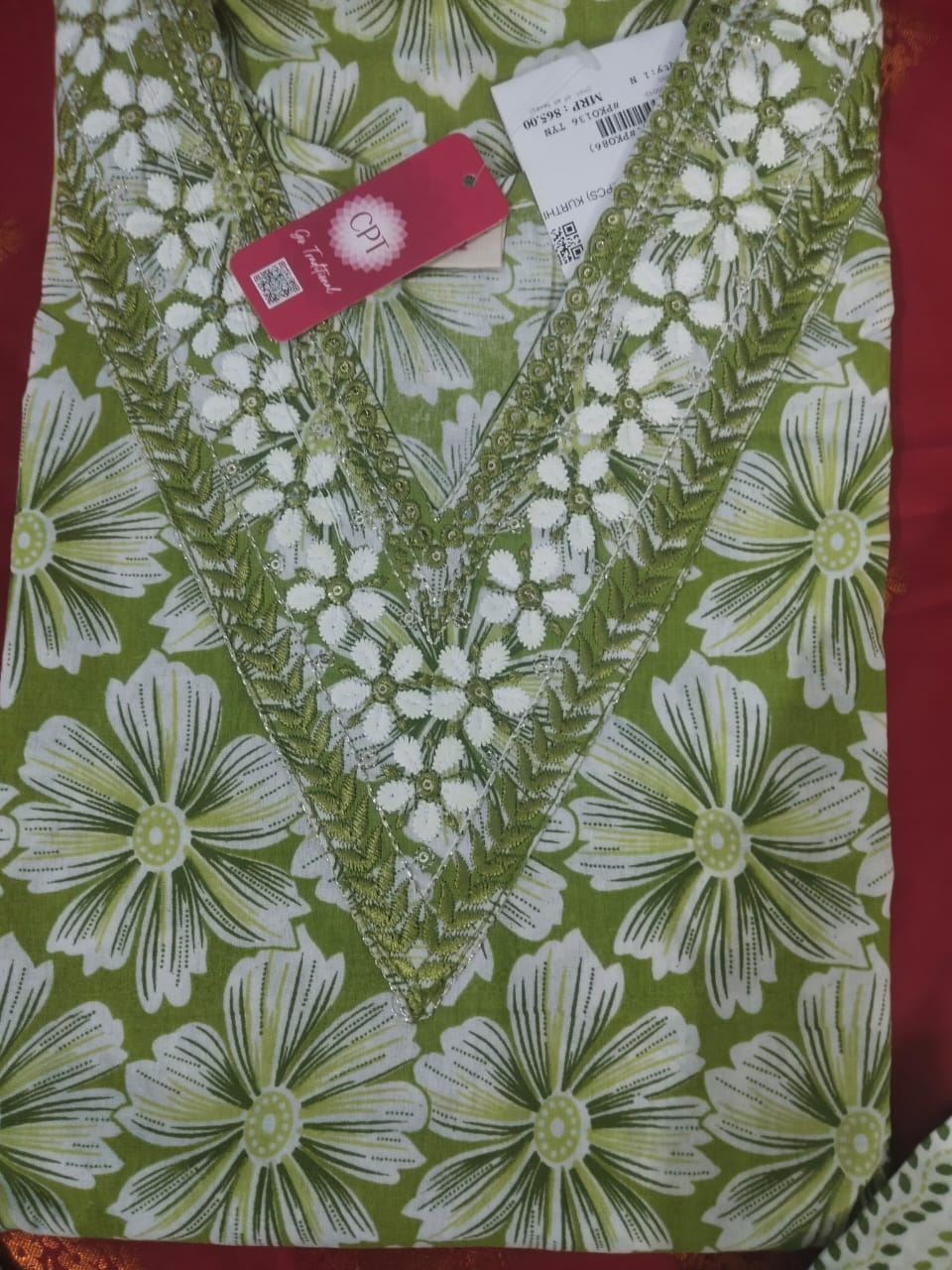Women’s Floral Printed Stylish V- neck Cotton straight Embroidered kurtha